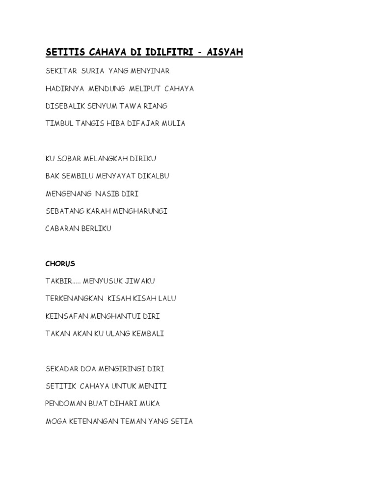 Bersyukurlah selalu jangan sampai lupa. Lirik Lagu Setitis Cahaya Di Aidilfitri Aishah. Aduhai manis sungguh dipandang.